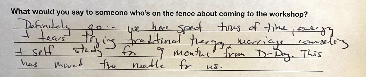 • Get guidance on the initial steps after discovery, so you can avoid costly mistakes that delay healing, and know how you want to proceed smoothly together as a couple.